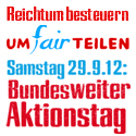 Am 29. Oktober fanden in mehreren großen Städten Deutschlands Kundgegebungen unter dem Motto "Umfairteilen" statt. Rund 40.000 Menschen gingen bundesweit für mehr Gerechtigkeit und die Zukunft des Sozialstaats auf die Strasse. Dem parteipolitisch unabhängigen Bündnis "Umfairteilen Reichtum besteuern!" gehören über 20 zivilgesellschaftliche Organisationen an: Vom globalisierungskritischen Attac und dem Online-Netzwerk Campact, Gewerkschaften wie ver.di und GEW, Sozialverbänden wie Paritätischer Wohlfahrtsverband, SoVD und Sozialverband VdK über die Katholische Arbeitnehmerbewegung, Migrantenverbände, Jugend- und Studierendenorganisationen bis hin zu den Naturfreunden Deutschlands und der Initiative Vermögender für eine Vermögensabgabe. Mehr denn je ist es wichtig aufzugzeigen, dass Schuldenfrage eine Verteilungsfrage ist. Bilder der Aktionen gibt es hier zu sehen.... | ||