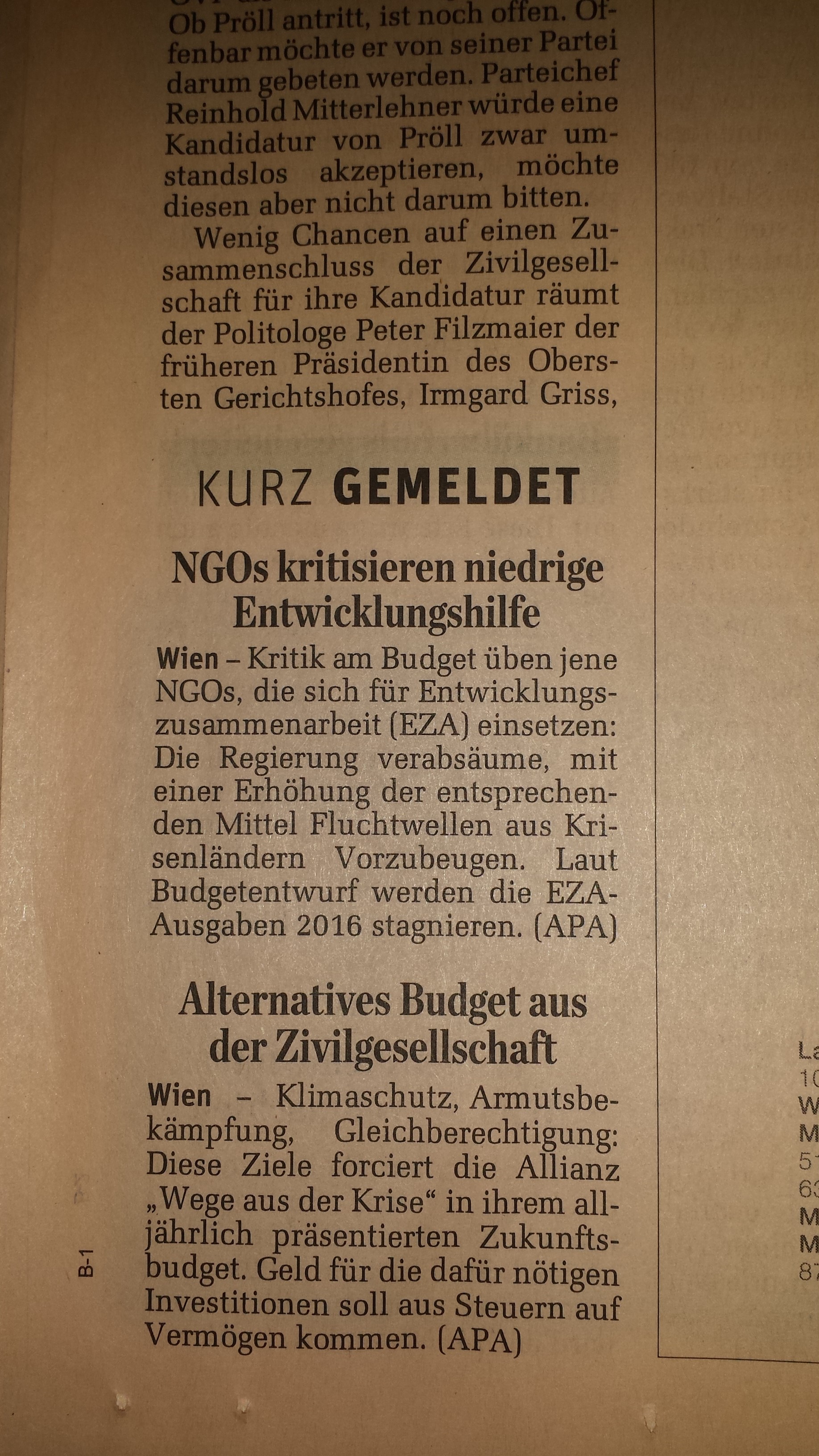Pressespiegel der PK zur Präsentation des Zivilgesellschaftlichen Zukunftsbudgets 2016